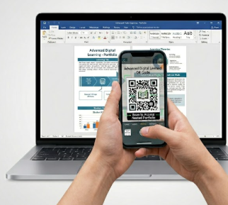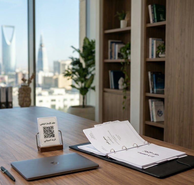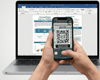 ربط ذكي (الباركود): (QR Code) داخل ملفك، يفتح مجلدات إنجازك بضغطة زر الميزة الكبرى: "إنجازك معك.. في كل مكان""ملفك يرافقك أينما كنت، وعلى أي جهاز تفضله"